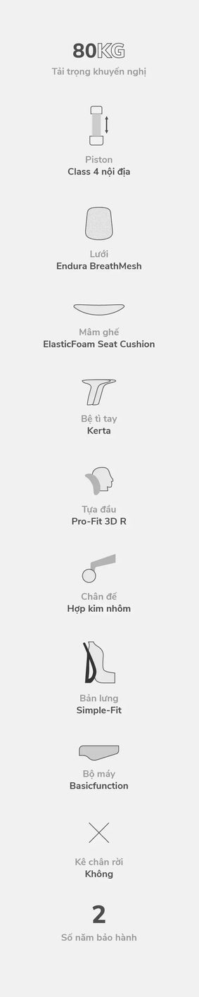 - FortisChair thích hợp với người có chiều cao từ 1,7m đến 1,85m và cân nặng từ 50kg đến 100kg.