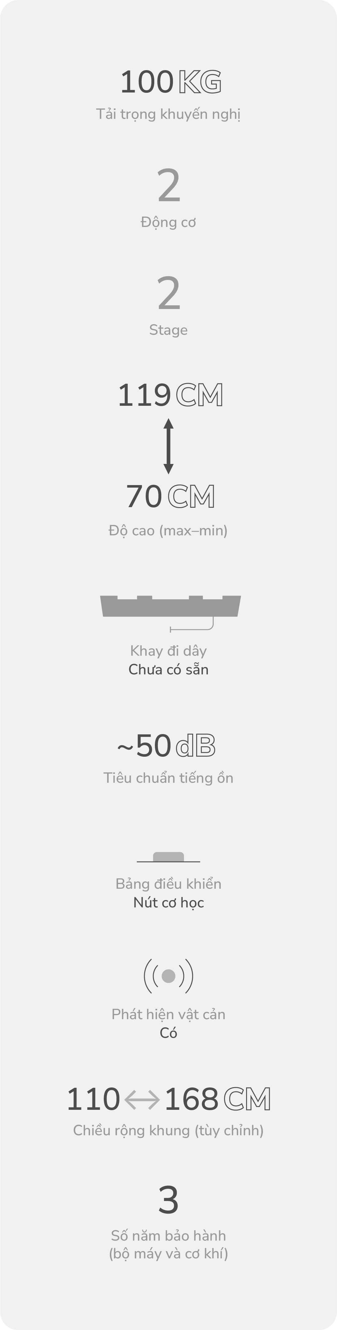 Sức mạnh của bàn nâng hạ Epione SmartDesk đến từ khối động cơ cao cấp và mạnh mẽ. Nhờ đó tải trọng của nó có thể đạt đến 125kg - dễ dàng nâng đỡ bất kỳ góc làm việc nào, theo mọi phong cách khác nhau.