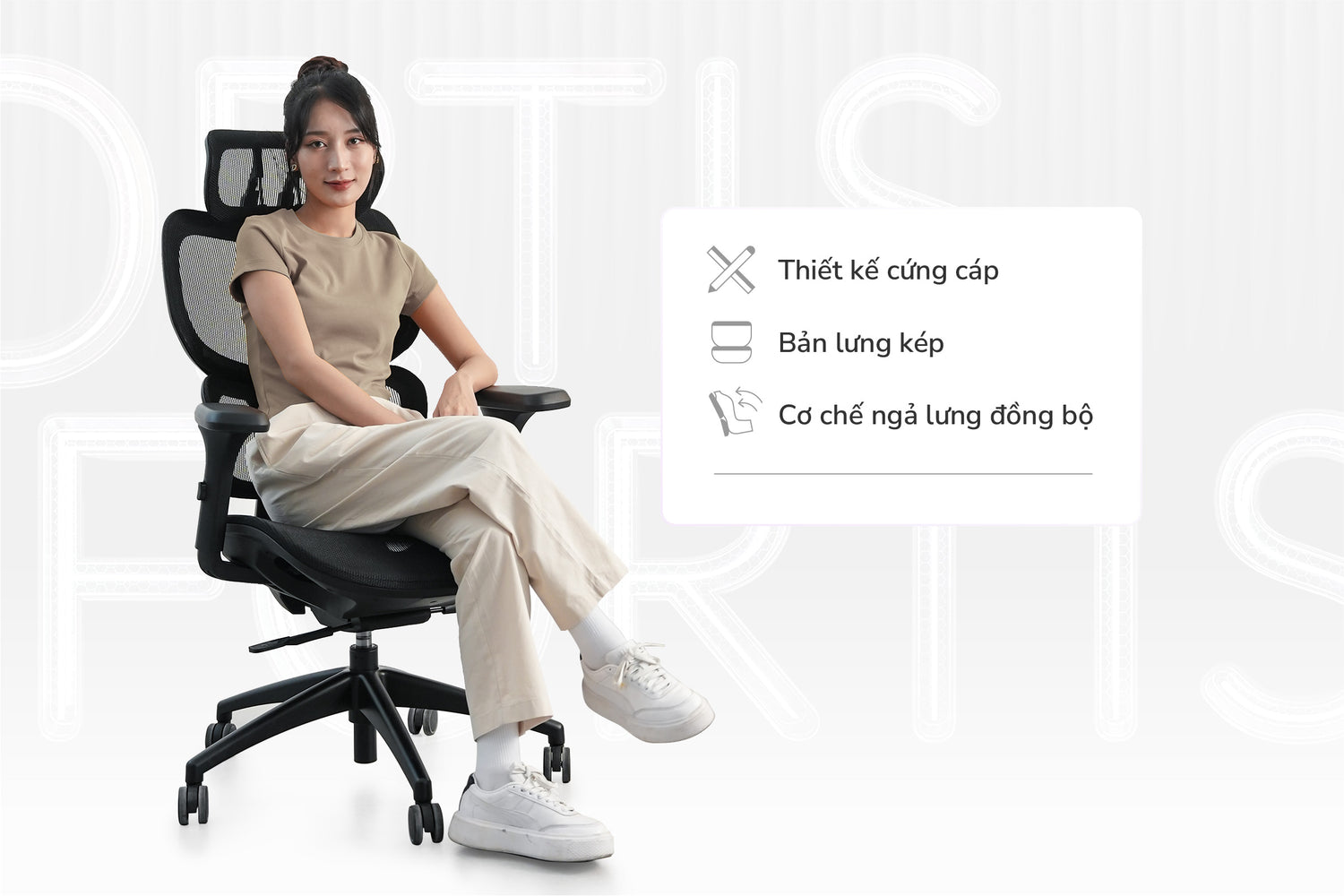 - ErgoChair Pro 2.0 thích hợp với người có chiều cao từ 1,65m đến 1,8m và cân nặng từ 55kg đến 80kg.